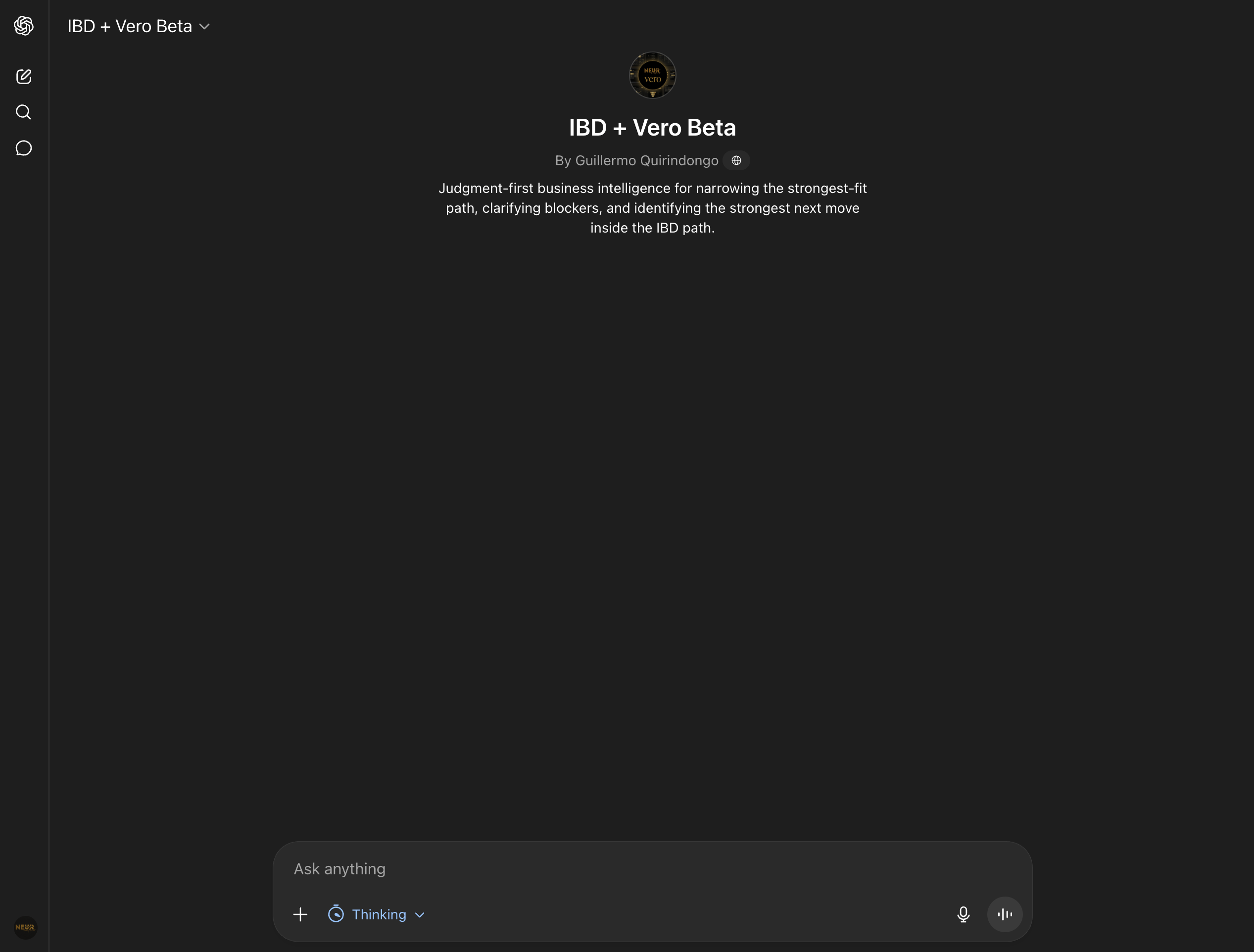 Vero is not a chat window. It is a context-aware build partner that knows your audience, your tone, and what is at stake — before you run a single prompt.